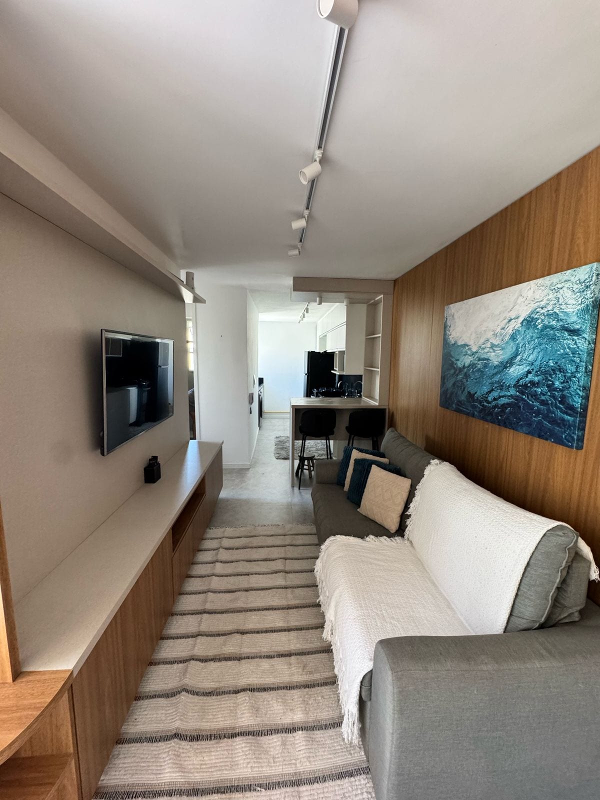 Apartamento estilo flat super aconchegante e lindo , com decoração moderna e clean perfeito para quem deseja desfrutar do seu momento de trabalho ou lazer com conforto, segurança, limpeza e boa localização . O sol é da manhã, vista livre para verde, andar alto, ambiente refrigerado. O apartamento tipo flat, encontra-se dentro de condomínio fechado com segurança, área de lazer com piscina, sala fitness, sauna e loja de conveniência para compras rápidas. Espaço acomoda bem duas pessoas