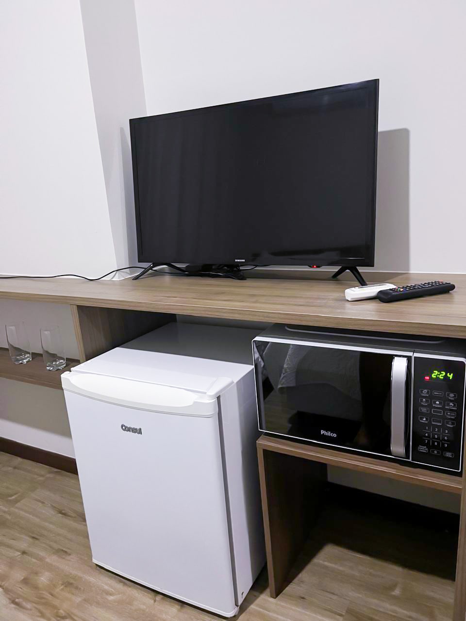 Suite privada, independiente, bien ubicada, cómoda y rentable. *No es un hotel* Cerca de Riocentro, Parque Olímpico (Rock In Rio), Farmasi Arena, Qualistage, centros comerciales, parques y playas - Televisor inteligente de 50 pulgadas - Aire acondicionado - Cafetera. - Microondas. - Balcón. - Estacionamiento privado - Gimnasio de entrenamiento - Recepción las 24 horas. El condominio también tiene un pago separado: Salón de belleza Cuarto de lavandería Alquiler de autos Cargador de auto eléctrico Luncheonette Mercadinho las 24 horas
