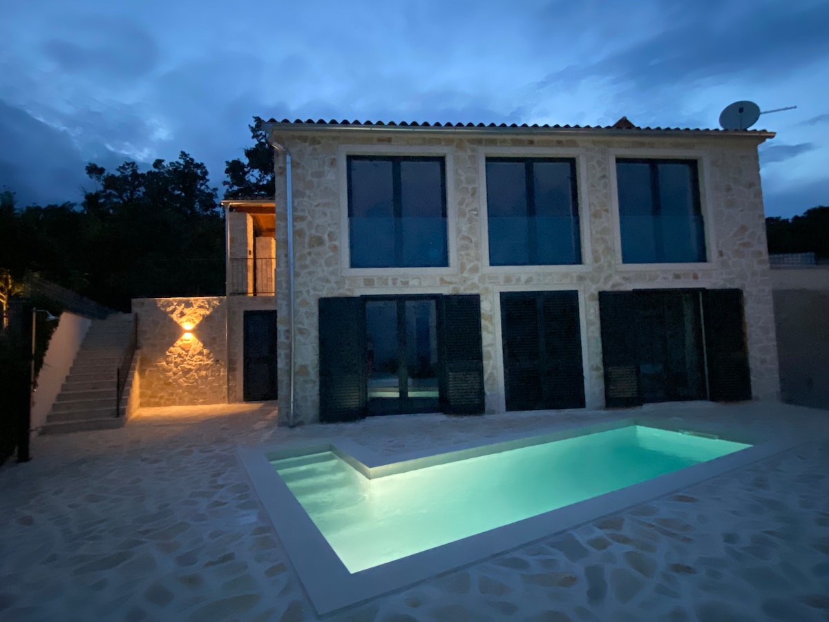 Relax with your family and friends in this comfortable accommodation, a new villa built in 2022 with a 32m2 swimming pool only 2 km from the beach and the sea. Villa Gondolika **** has: 3 rooms 3 bathrooms toilet + utility the kitchen living room swimming pool barbecue private parking for 3 cars sea and mountain view The house is located in the quiet place Gondulići, near Old Town of Labin, where you find markets , restorants and shops. Near the house walking and cycling paths.