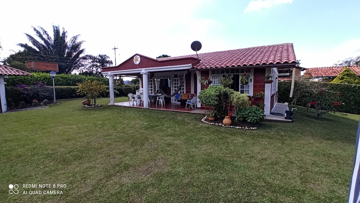 Hermosa finca campestre, a 25 min del parque del café, Armenia, Pereira, a 5 minutos de Quimbaya, a 25 min del parque Ukumari, perfecto espacio para descansar en familia y amigos, espacios para jugar billar, hacer asado, piscina, yacuzzi exterior e interior en el baño ppal, 4 habitaciones, para 12 personas (si son más podemos revisarlo), árboles frutales, al lado del pueblo Alcalá para hacer compras. Queda a 30 minutos del aeropuerto de Pereira.
