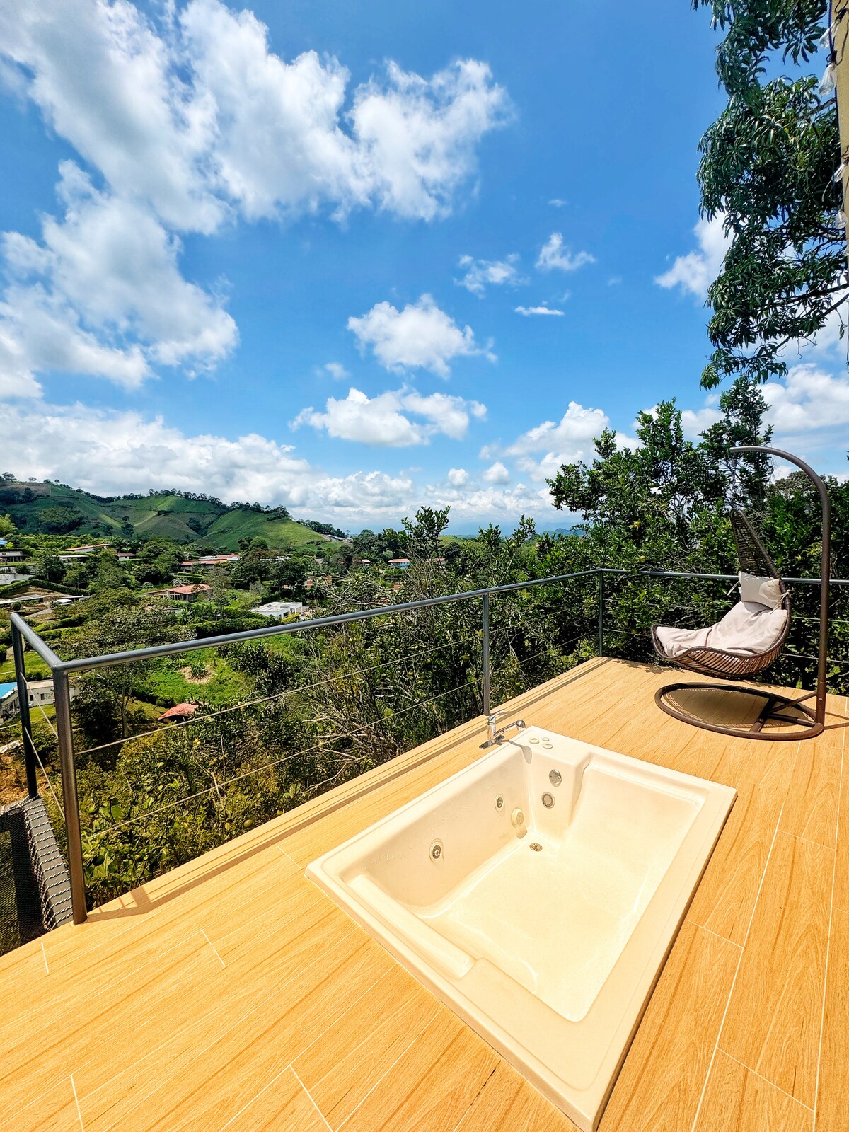 ¡Atardecer en suite rural en Pereira! Jacuzzi y red
