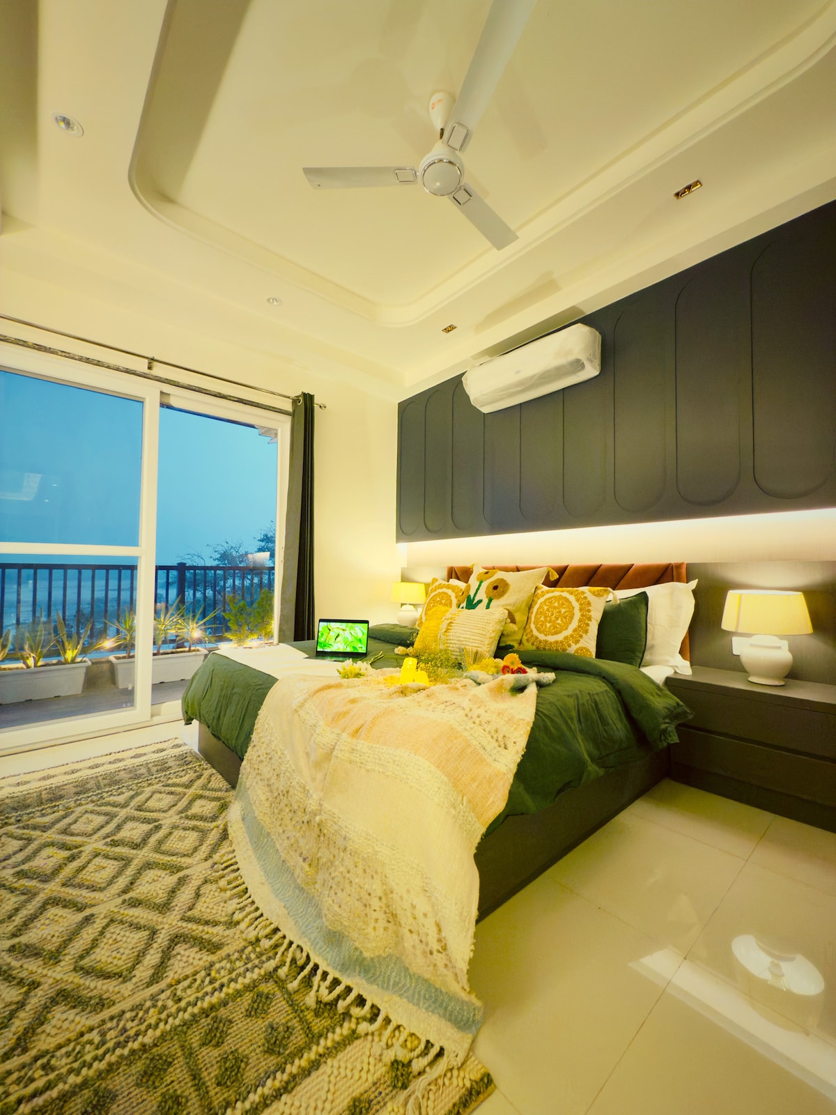 Step into a sanctuary where modern comfort meets the serene spirit of the Ganga. Nestled just steps away from the river, this stylish and calming retreat is designed for travelers who seek peace, rejuvenation, and a touch of luxury. Wake up to soft sunlight filtering through large windows, enjoy your morning chai on a private balcony with fresh river breezes, and unwind in thoughtfully curated interiors that bring together elegance, comfort, and nature.