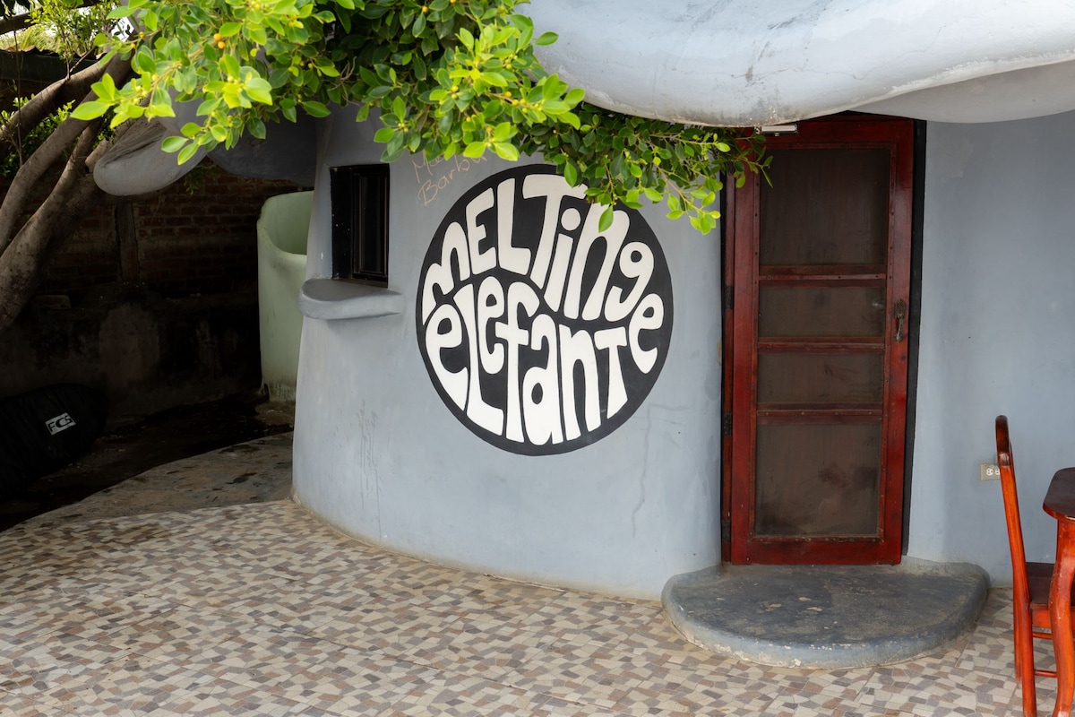 Melting Elefante is an organically designed living space located on Guasacate Beach, next to the famous Popoyo Surf Break. The building is a flowing, natural space unlike any other. Duncans room is located on the second story of the Melting Elefante. It has a Queen bed, work desk, Wifi and a great view of the ocean. Shared bathroom and shower are located outside. This room is great for digital nomads or the budget minded traveler/s that enjoy their privacy.