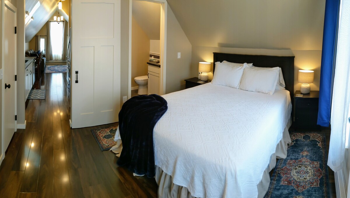 Una mansión victoriana de ladrillo de 1886, actualizada con comodidad y estilo modernos. Esta unidad es una doble principal que abarca dos plantas con una suite principal en la planta baja que incluye baño con bañera de hidromasaje y ducha y otra suite principal en la planta superior con bañera de hidromasaje y ducha con claraboya. También hay dos sofás cama tamaño queen con colchones de espuma viscoelástica. Los dos televisores tienen suscripciones a Netflix y un Roku para otros programas. La conexión inalámbrica es rapidísima. Hay una terraza privada a través de puertas francesas con vistas al horizonte.