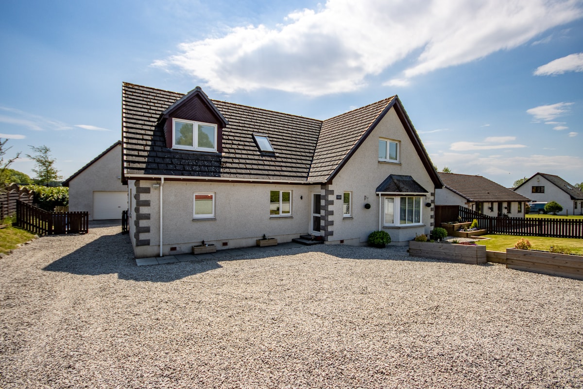 Casa de vacaciones de lujo ubicada en Tore, que está a solo 7 millas de Inverness y perfectamente ubicada para la costa norte 500. La propiedad está situada en una zona rural con vistas panorámicas, un gran jardín trasero cerrado y un amplio aparcamiento privado. 5 dormitorios, una gran sala de estar y comedor, sauna, bañera de hidromasaje y sala de juegos. Perfecto para recargar las pilas y garantizar una escapada relajante y cómoda.