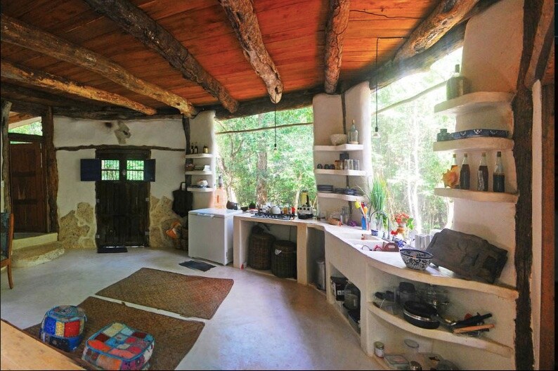 RECENTLY RENOVATED. Secluded, & sophisticated private luxury jungle home. On 1/2 acre of stone walled & gated property. The home Mayan made in the traditional style of the Maya w/a warmth & character area unique. Built sourcing local materials: stone walls, vaulted ceiling-heavy hard wood. Custom furniture, locally sourced decor & vintage finds.. Palapa roof, top quality king beds w/canopy mosquito netting, tree trunk bath/shower, & HEAVENLY natural soft mineral rich Cenote H2O dipping pool..