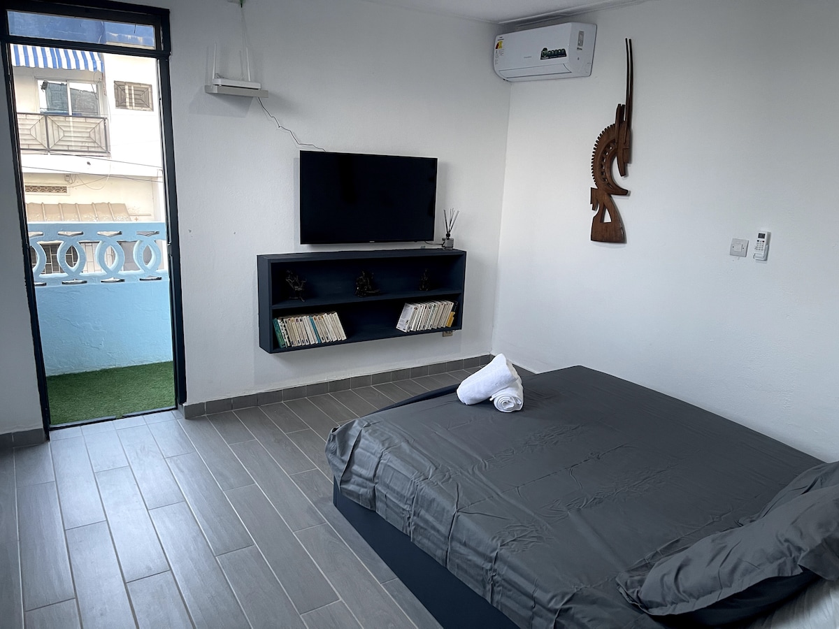Hermoso estudio con cocina equipada, baño, oficina, wifi, aire acondicionado, TV, en una propiedad verde y tranquila, con piscina en Abidjan, Riviera 3. La reserva incluye limpieza semanal gratuita, sábanas, toallas, jabón y lavandería y planchado gratuitos de la ropa de los huéspedes. Es posible que compartas la piscina y el jardín con otros huéspedes. Se puede añadir una cama supletoria para un tercer huésped. La propiedad es tranquila y tiene muchos árboles. Se encuentra a 10 minutos a pie de tiendas y restaurantes.
