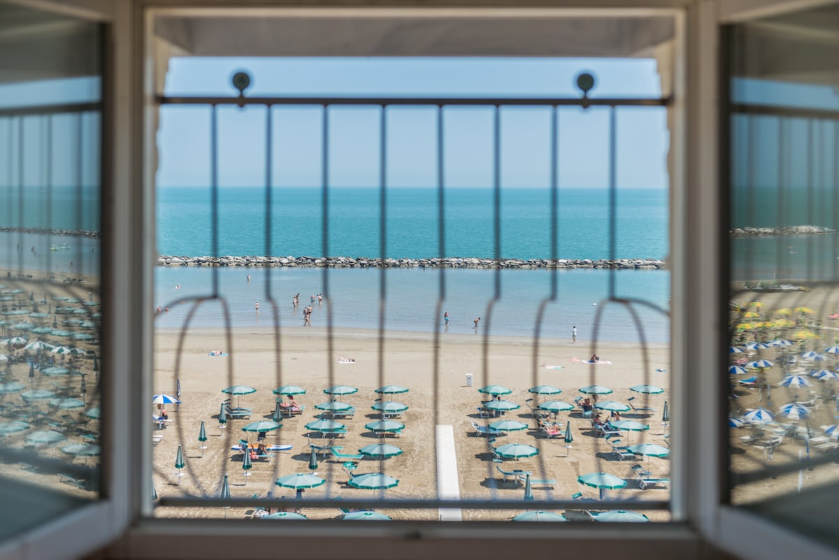 ¡Me encanta este departamento! Está frente a la hermosa y efervescente playa de Riccione, y se compone de dos dormitorios luminosos: uno tiene una cama doble estándar, mientras que el segundo tiene una cama tamaño Queen. El baño tiene una ducha muy grande, la cocina está totalmente equipada y la sala de estar es perfecta para relajarse y hacer conversaciones. Por último, pero no menos importante, ¡hay un balcón habitable y con vistas al mar! El apartamento tiene un garaje privado. Ascensor Wifi Sombrilla, tumbonas, juegos de playa