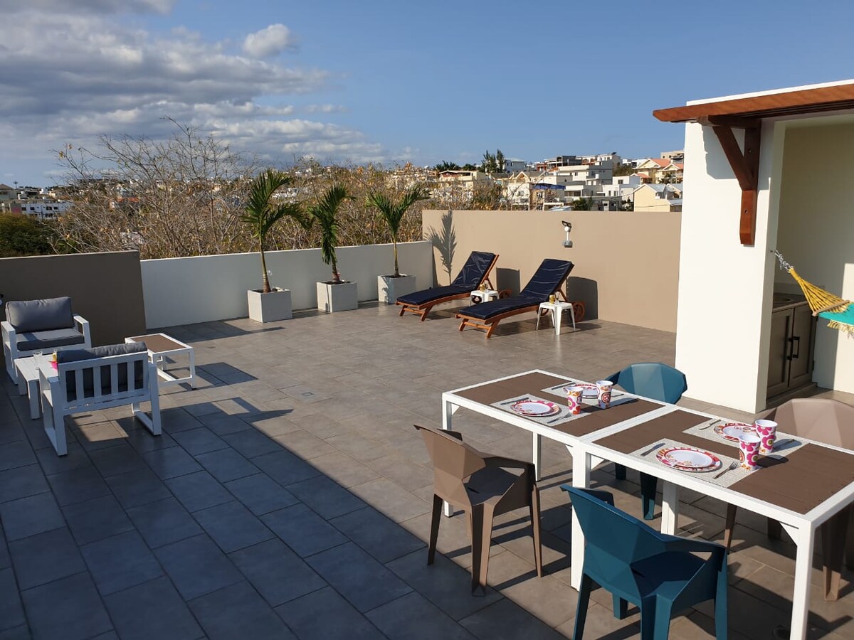 Ubicada en un exuberante jardín criollo, nuestra villa ofrece un remanso de paz. Perfectamente equipada, combina el confort moderno y el encanto tropical con su azotea y su piscina para relajarse. Cerca de actividades como snorkel, excursiones en barco y senderismo, es el lugar ideal para explorar el oeste de Mauricio. Le va a encantar nuestra villa tranquila por su ubicación a 5 minutos a pie de la playa de la Preneuse y al lado de los restaurantes, tiendas y un supermercado.