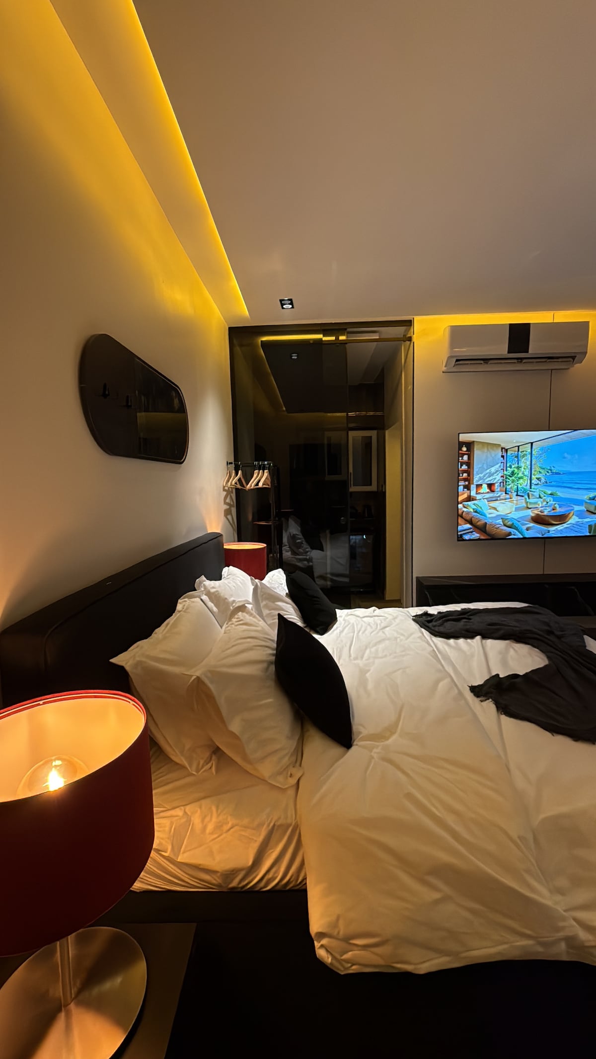 إقامة فاخرة في قلب الرياض، بالقرب من مطار الملك خالد ومحطة مترو اليرموك، بموقع مثالي يتيح وصولًا سريعًا لأهم معالم المدينة. استديو مودرن أنيق وهادئ بتصميم عصري، يضم سريرًا ناعماً ومخدات فندقية مريحة، مع كنب كبير وشاشة QLED عالية الجودة. ساحة خارجية واسعة تضم سينما خارجية مع بروجكتر، شواية وموقد نار، بالإضافة إلى جاكوزي حديث يتسع لشخصين. 5G وإنترنت , YouTube, Netflix, OSN استمتع باشتراكات سريع ومستقر للعمل أو الترفيه. تتوفر ميزة العزل الصوتي، الدخول الذاتي، ومواقف امام العمارة وفي القبو .