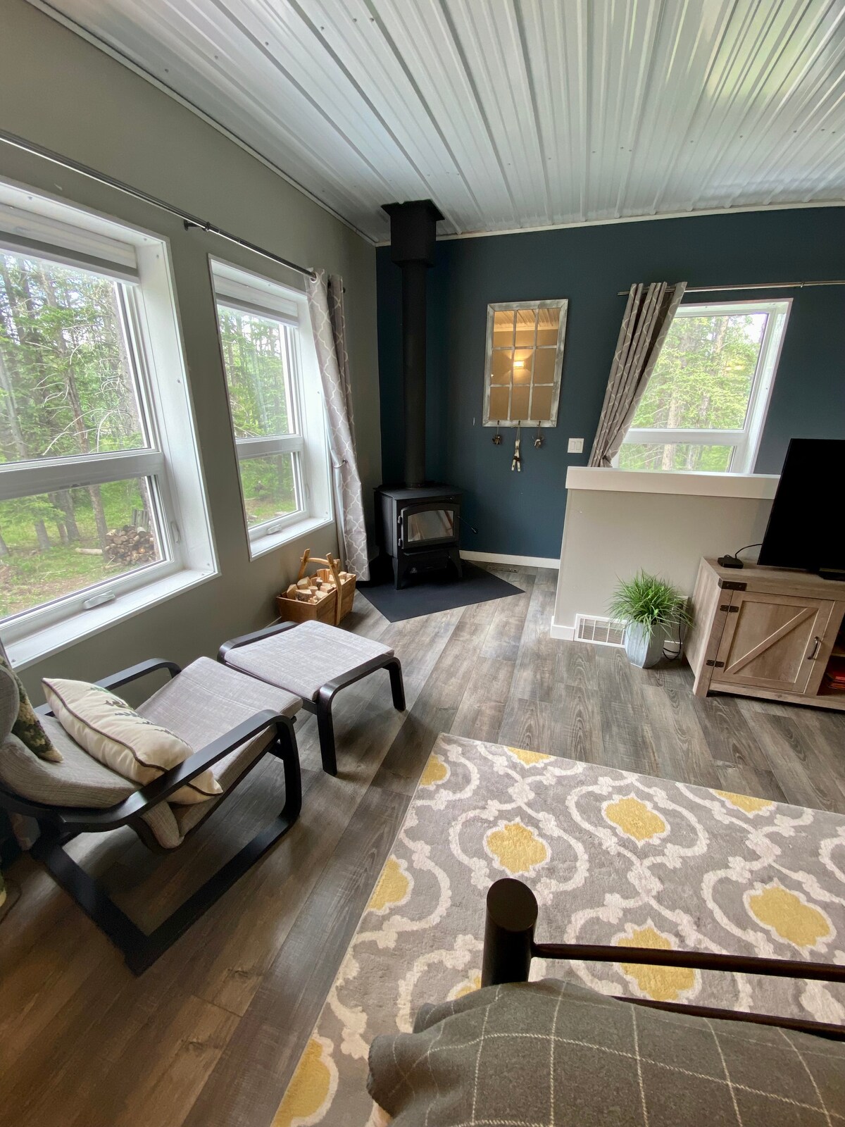 Estudio/loft moderno y privado de planta abierta con estufa de leña, ubicado en un terreno boscoso con abundante vida silvestre. Ubicado entre la hermosa y rústica aldea de Bragg Creek, el impresionante paraíso de montaña de Kananaskis y los mundialmente famosos senderos de West Bragg Creek. A 10 minutos en auto de innumerables rutas para practicar senderismo, ciclismo, raquetas de nieve, esquí de fondo y equitación. La unidad cuenta con una chimenea exterior, una terraza a nivel del suelo, una cama queen y un sofá cama para un tercer huésped, wifi, Netflix, Prime, una ducha grande, una cocina personalizada y unas vistas impresionantes al bosque.