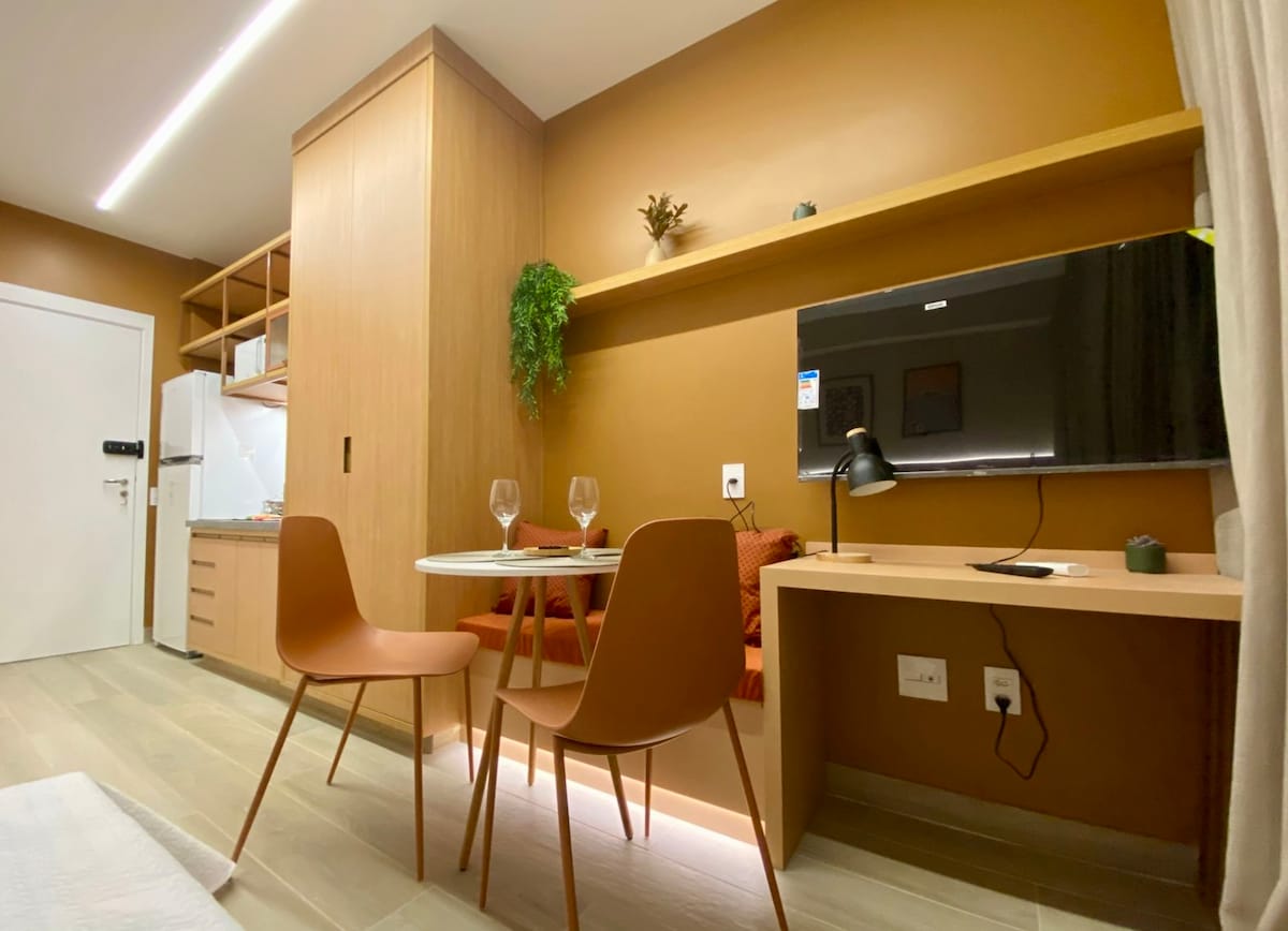 ¡Este pequeño estudio tiene todo lo que buscas! Ubicación excepcional: cerca de estaciones de metro, comodidades y estacionamientos. Alta comodidad: cocina con microondas, cafetera y minibar (sin estufa), TV inteligente 4K de 50 pulgadas, alexa, ropa de cama completa, cama doble e Internet de 300 mega. ¡Los mejores restaurantes, excursiones y lugares de interés de SP al lado!