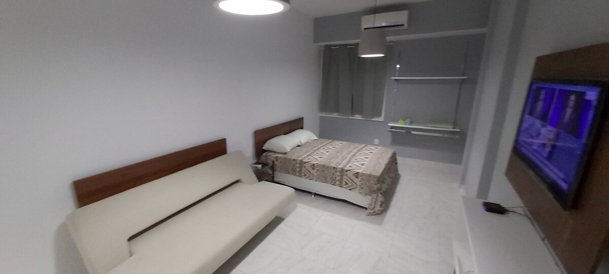 Loft recién reformado, con decoración playera, cerradura digital, dormitorio y sala integrados con cocina americana y totalmente equipada. Moderno y seguro, este alojamiento se encuentra en un condominio con conserjería las 24 horas y cámaras de seguridad, en una de las mejores ubicaciones de Copacabana (posto 5), junto al Museo de la Imagen y el Sonido, con vistas al mar, rodeado de una amplia variedad de servicios, como bares, restaurantes, lavanderías, mercados, bancos.
