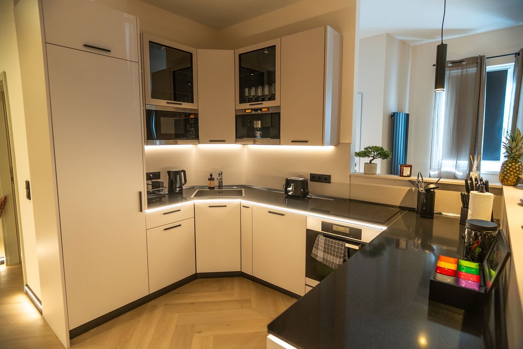 Hermoso apartamento luminoso de 55 metros cuadrados con cocina con nevera, estufa, microondas, tostadora , cafetera Senseo. Los platos están incluidos, hervidor de agua y caldera de huevo. Sala de estar con TV de 55 pulgadas ,una esquina funcional con función de cama, un baño espacioso con dormitorio doble y TV. En la temporada de frío, la calefacción por suelo radiante está encendida.