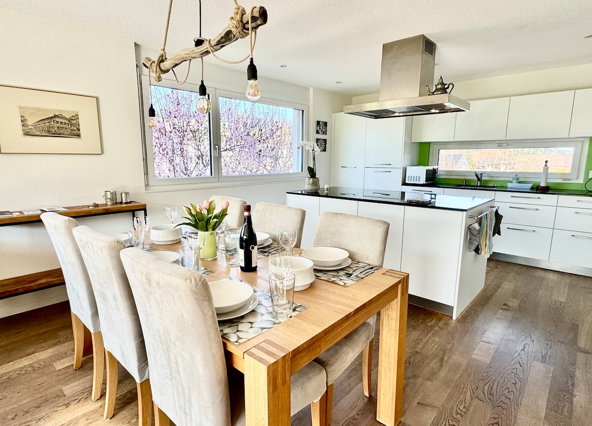 A cosy hideaway in the countryside - perfect for relaxing. Whether alone, as a couple or with family, everyone will find peace and quiet here. Music lovers will find a piano or a guitar. The stylish accommodation with 5.5 rooms offers a retreat for everyone. Nestled in the rolling hills of the Emmental, there are marvellous hiking trails and refreshing streams for swimming. There is also a petting zoo, horse riding and even camel rides nearby - an idyllic experience for young and old.