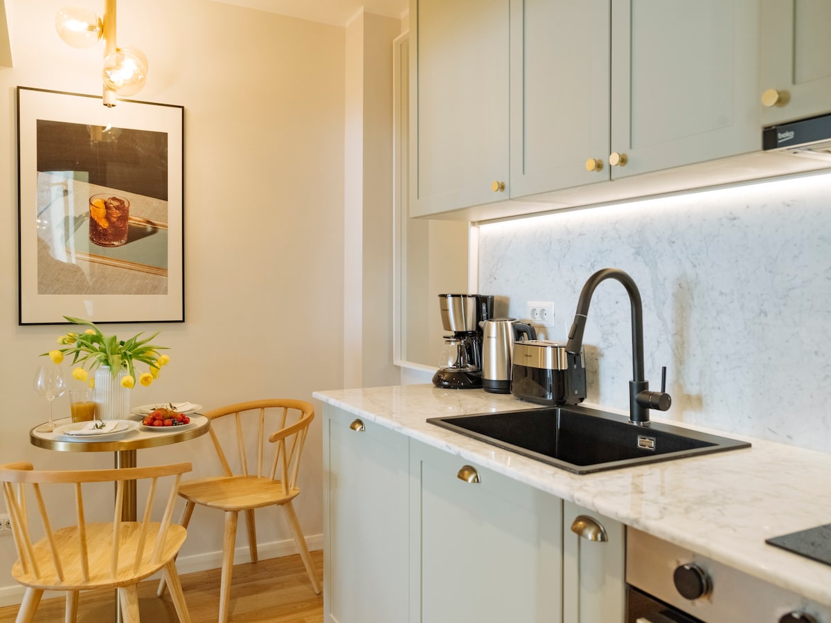 Ingrese a un departamento de un dormitorio, elegante y cómodo, diseñado para que se sienta como en su propio hogar. Cuidadosamente organizado y bañado por la luz natural, el espacio ofrece un ambiente cálido y acogedor, ideal tanto para estancias cortas como para visitas más prolongadas. Cada detalle se ha considerado cuidadosamente para crear una combinación equilibrada de estilo y practicidad, lo que hace que el espacio sea adecuado para viajeros solos, parejas o huéspedes de negocios.
