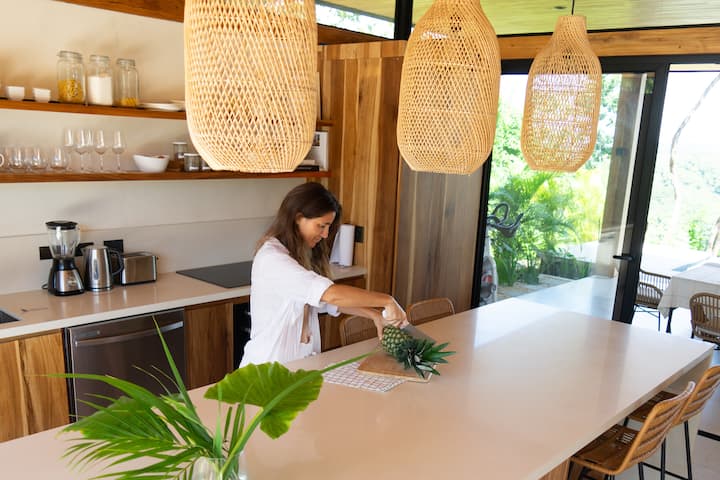 Soy Malena, nací en Argentina y vivo en Santa Teresa desde hace 4 años con mi familia. Creamos Mahalo Villas como un proyecto familiar: vivimos en la propiedad y nos ocupamos personalmente de cada detalle. Para nosotros, cada huésped es un huésped de verdad, no un número de reservación.