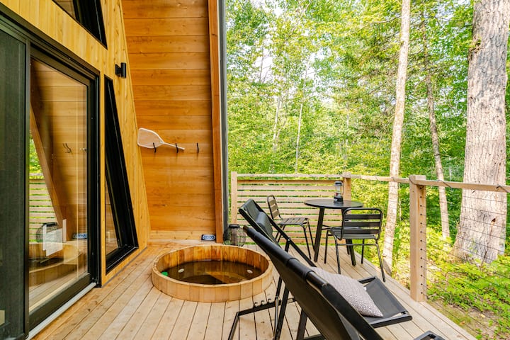 Nuestra misión es que la gente vuelva al bosque, más a menudo. Nuestras cabañas en forma de A con bañeras de hidromasaje de cedro, acceso directo al lago, vistas panorámicas al bosque y 75 acres de senderos están diseñadas para ofrecer tranquilidad, lujo y comodidad en la naturaleza, todo a poco más de una hora de Ottawa-Gatineau.