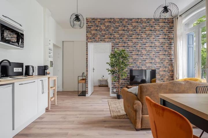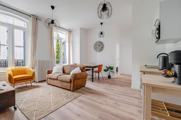 En un entorno moderno y acogedor, este luminoso apartamento es la base perfecta para explorar Saint-Étienne. Cuenta con dos acogedoras salas de estar, cada una equipada con un sofá cama doble, una televisión, un comedor y una cocina abierta totalmente equipada (cafetera Nespresso, fogones, microondas, nevera, utensilios, almacenamiento, etc.).