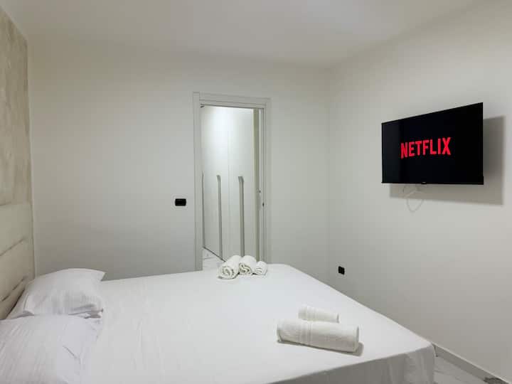 • El dormitorio tiene el televisor inteligente con Netflix, primeros videos y todas las transmisiones más populares, puedes seguir viendo tus series y películas favoritas, será agradable disfrutar de un momento relajante cuando regreses después de un día en la magnífica Nápoles.