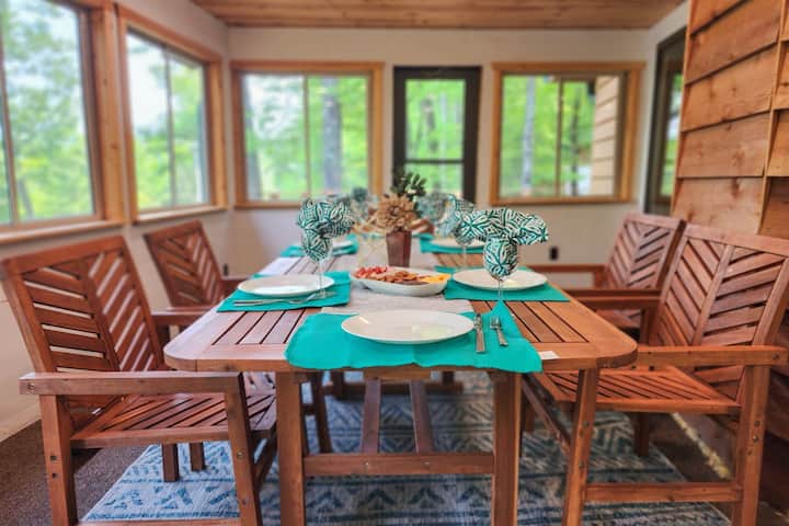 En The Willow, de Acorn Shores, los s'mores nunca se acaban, el café siempre es fuerte y la bañera de hidromasaje tiene vistas al lago.