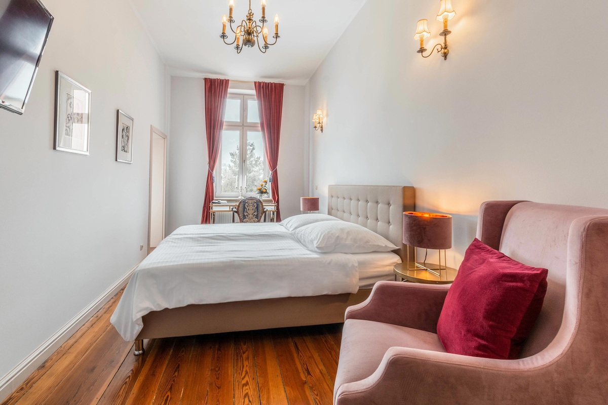 Nuestra casa señorial está en el centro de las encantadoras colinas de Mecklenburg, Suiza, ¡aquí encontrarás sobre todo paz e naturaleza infinita! La habitación acogedora de 23 metros cuadrados, Klink, está ubicada en el primer piso del castillo de nuestra propiedad. Está amueblado con una cama doble de 1,80m de ancho. En los días frescos, la estufa de azulejos puede proporcionar calor gordito. Se puede reservar el desayuno por 21,00 € por persona. Te encantarán las elegantes comodidades de este encantador lugar.