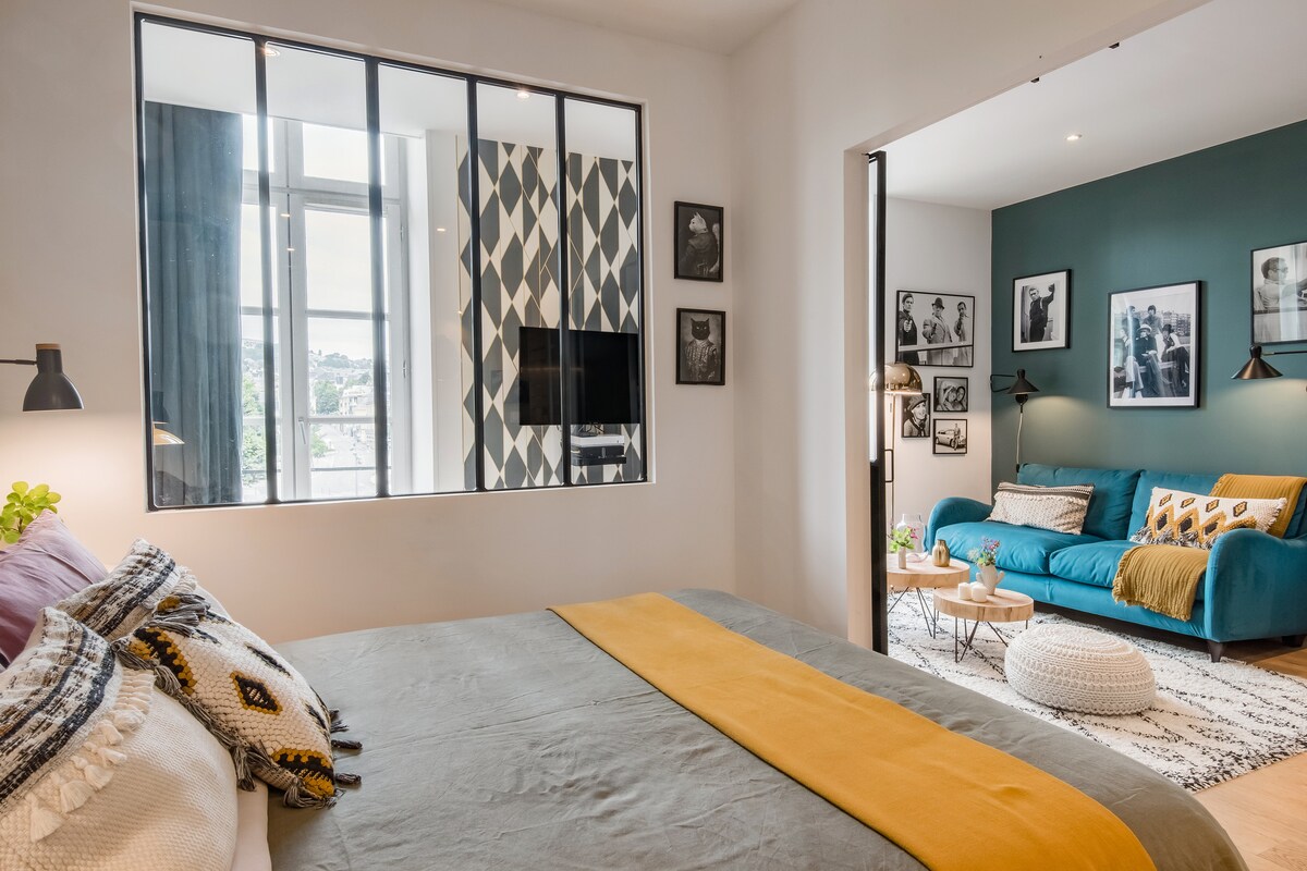 Con sus ventanales y su terraza, esta casa de campo ofrece unas vistas panorámicas de primera de Rouen. Este lugar de moda cuenta con una gran sala de estar luminosa con una cocina abierta a la sala de estar, un espacio de teletrabajo, 2 dormitorios y 1 baño. Además, disfrutará de la comodidad, la tranquilidad y el aire acondicionado. Aparcamiento gratuito en la calle. Posibilidad de aparcar bicicletas, escúteres o motocicletas (garaje). A 20 minutos a pie de la estación de tren SNCF y del centro de la ciudad. Estación de autobuses cercana