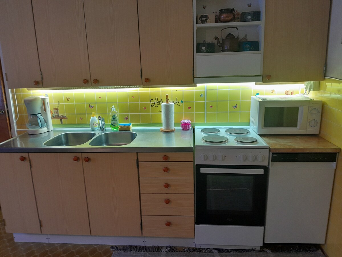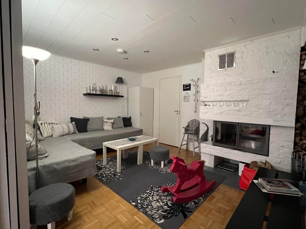 Koti teille, jotka haluatte viettää aikaanne mukavasti yhdessä. Langaton wifi, takka, suojaisa piha ja pysäköinti ovat asukkaiden käytössä. -Pihalla voi viettää aikaa: grillata, ehkäpä rakentaa lumiukko, laskea mäkeä tai ihastella joulukuusta ja jos olet onnekas voit nähdä revontulet taivaalta. Vain 5 minuutin kävely keskustan palveluihin, ravintoloihin ja ostoskeskuksiin. Kaapista löydät aamupalaa itsepalveluna: mm. kahvia, teetä, mehua, keksiä.