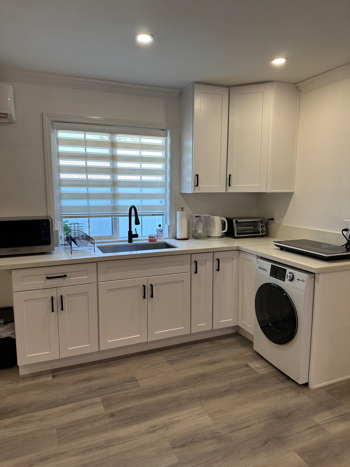 Un estudio completamente nuevo y renovado con su propio espacio de estacionamiento de fácil acceso, entrada privada, cocina y baño. Incluye una cama tamaño queen y una cama doble. Hay un sofá grande frente a un televisor Roku de pantalla ancha con Netflix, una unidad de aire acondicionado/calefacción, microondas y lavadero. 我們也說中文