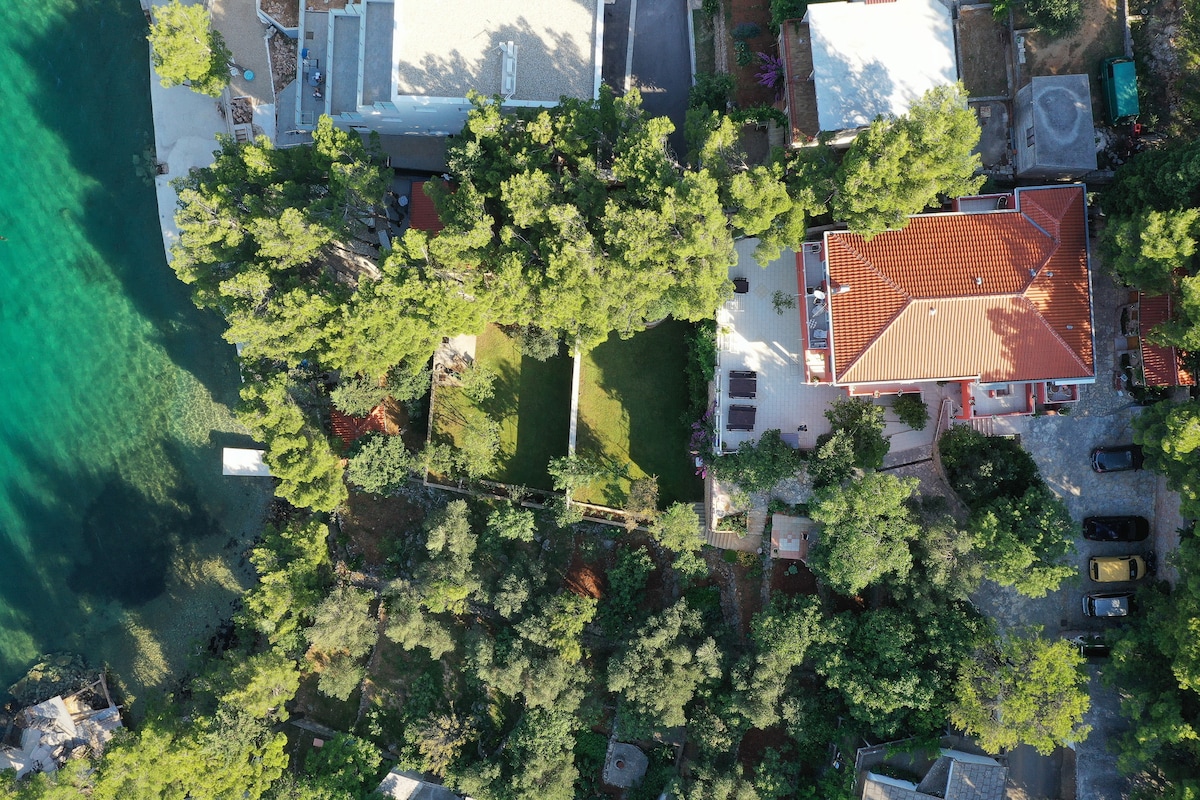 Esta propiedad está situada directamente junto al mar. Disfruta de las comodidades de nuestro apartamento; es espacioso, siéntete libre de caminar descalzo por el suelo de madera... después de un baño temprano por la mañana, disfruta de un café en nuestro balcón o en nuestra sala de estar, ambos con increíbles vistas al mar, mira las regatas, maravillosas puestas de sol, con un poco de suerte incluso delfines... haz una barbacoa en nuestro jardín/zona de parrilla bajo la sombra de las vides, o simplemente coge una de nuestras bicicletas y da un agradable paseo en bicicleta...