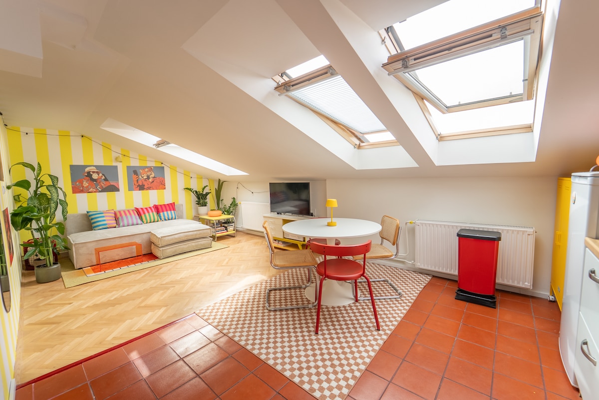 Estudio de ático para artistas y estacionamiento privado gratuito