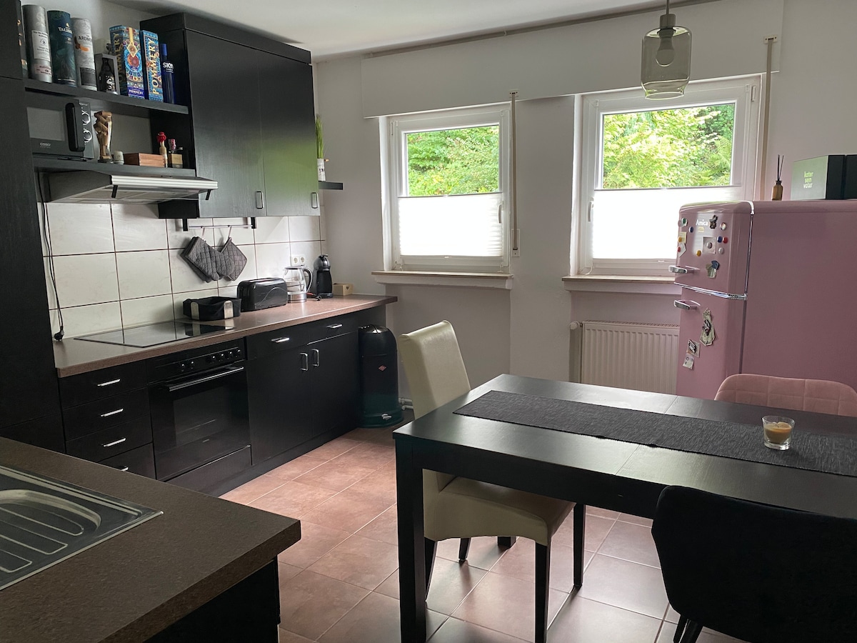 ¡Oigan, queridos huéspedes! Bienvenido a nuestro apartamento dúplex de gestión familiar, situado en el centro, entre Düsseldorf y Essen. Ideal para familias, artesanos y viajeros de negocios. Con wallbox (pago a tanto alzado según el volumen de carga, previo acuerdo), cocina, wifi, jardín y aparcamiento gratuito frente a la casa. Justo en el carril bici panorámico (ruta del valle del Ruhr), perfecto para paseos y excursiones. Guiado personalmente con corazón y fiabilidad. ¡Tenemos muchas ganas de recibirte!