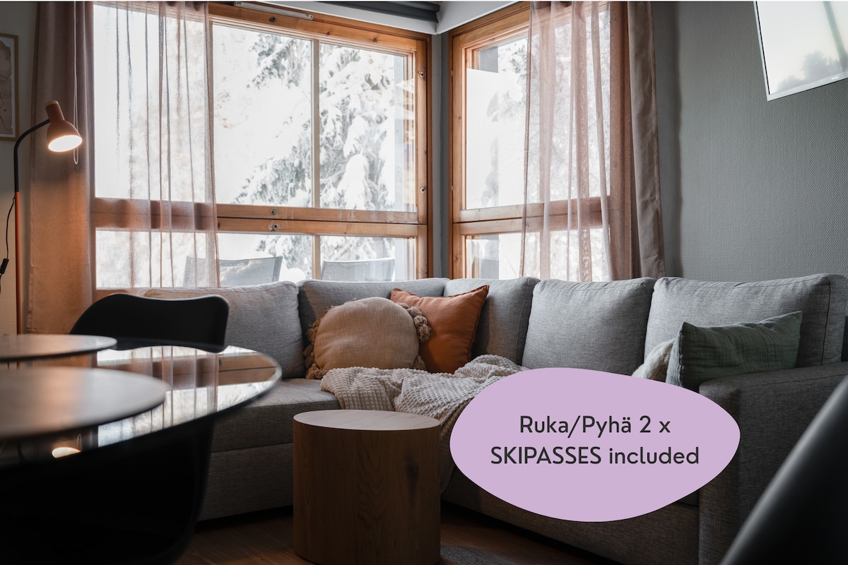 Escápate a nuestro encantador apartamento de cabaña de madera en Ruka. A solo 800 metros del telesilla más cercano y a 200 metros del autobús de esquí. ¡Incluye 2 pases de esquí de acceso total para toda tu estancia! El pueblo de Ruka está a poca distancia a pie. Disfruta de una sauna tradicional, una chimenea crepitante y una cocina totalmente equipada. Tiene capacidad para 6 personas con 1 dormitorio, un loft, 4 camas (1 individual) y un colchón de aire. Perfecto para parejas y familias, se admiten mascotas y es ideal durante todo el año, con rutas de senderismo panorámicas en un impresionante parque nacional. ¡Reserva ahora!