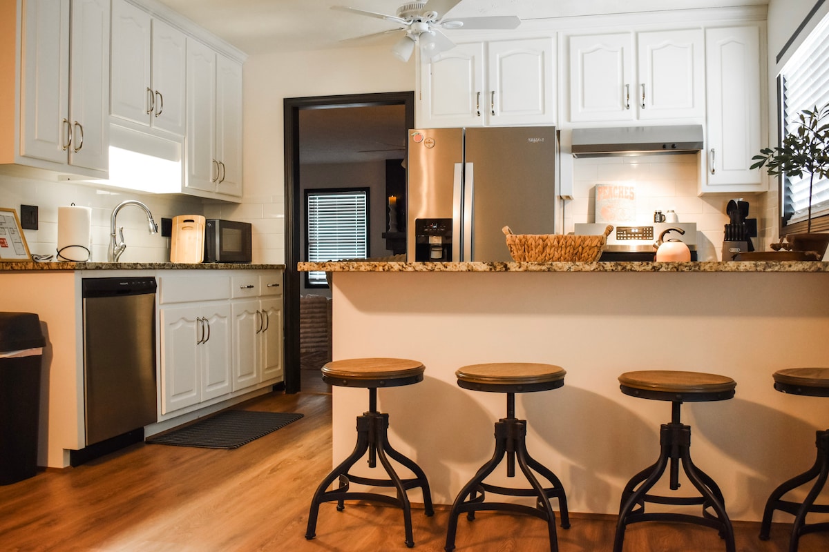 Le damos la bienvenida a Brookwood Cottage, su acogedor y cuidadosamente diseñado refugio a pocos minutos de Fort Benning. Perfecta para familias de militares, visitas por graduaciones, estancias temporales o una escapada relajante, esta casa de 2 dormitorios y 2 baños ofrece la combinación ideal de comodidad, conveniencia y encanto. Entre a un espacio cálido y acogedor diseñado para ayudarle a relajarse. Con habitaciones cómodas, una cocina bien equipada y una sala de estar acogedora, tendrá todo lo que necesita para sentirse como en casa.