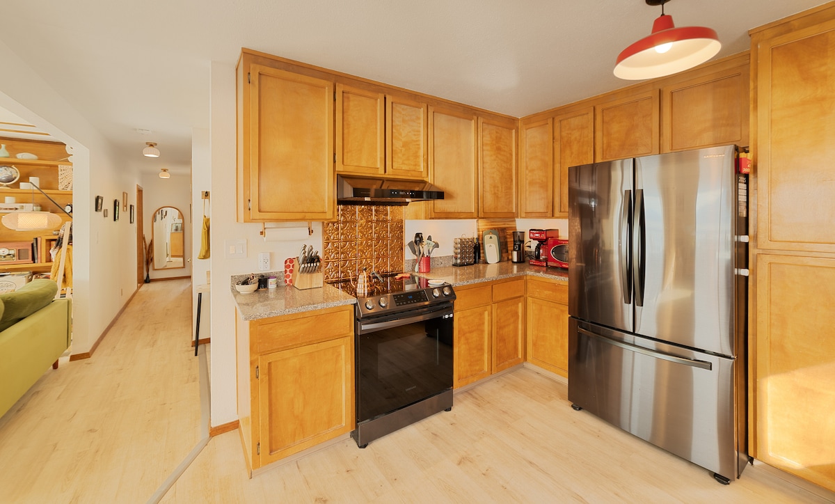 Ubicada entre majestuosas secuoyas, nuestra encantadora y elegante casa ofrece un refugio único para los huéspedes que buscan una escapada tranquila en plena naturaleza. Entra para descubrir un espacio habitable cuidadosamente diseñado, adornado con detalles de madera natural, una decoración elegante y una amplia luz natural que fluye a través de las ventanas. Ya sea que estés buscando una escapada romántica, unas vacaciones familiares o un refugio de fin de semana, nuestro hogar ofrece la combinación perfecta de comodidad, conveniencia y belleza natural. A 4 minutos del centro de la ciudad.
