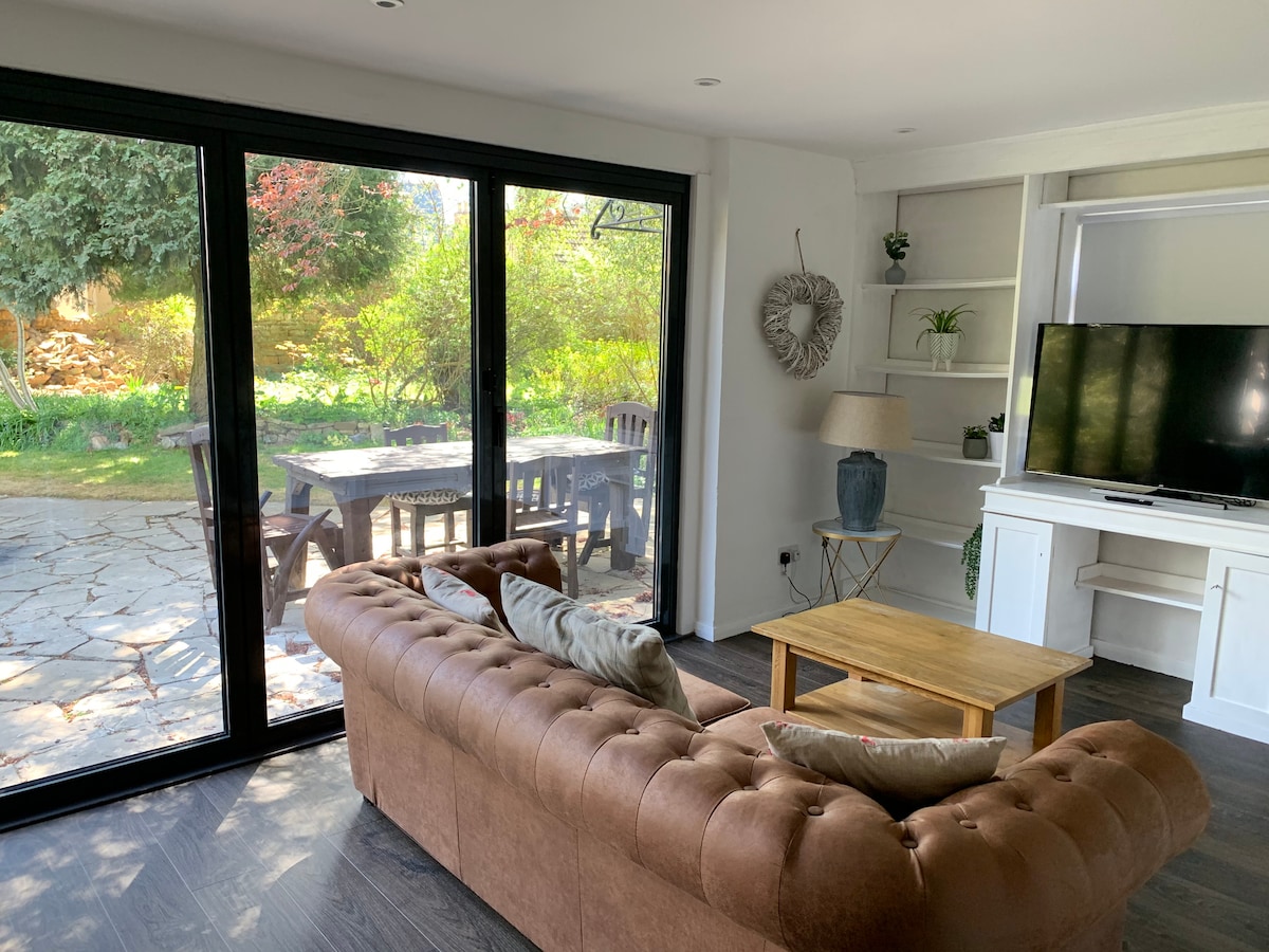 meadow View es una casa de huéspedes independiente de un dormitorio ubicada en una granja en funcionamiento cerca de la granja principal con vistas a impresionantes vistas al campo. Vista al prado y propiedad de un dormitorio con una cama tamaño king y baño privado . También hay un sofá cama extraíble en el dormitorio. Cocina totalmente funcional, lavavajillas . Gran salón que tiene un sofá cama extraíble, con puertas plegables hacia el patio. Zona de jardín con asientos. Por favor, ten en cuenta que el dormitorio y el baño están arriba. lavadora y secadora en la granja principal
