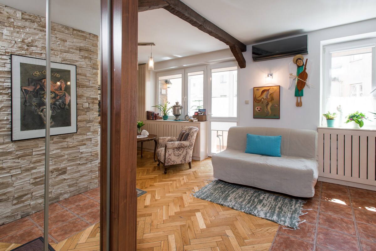 Loft de diseño completo en el centro de Cracovia soleado + balcón