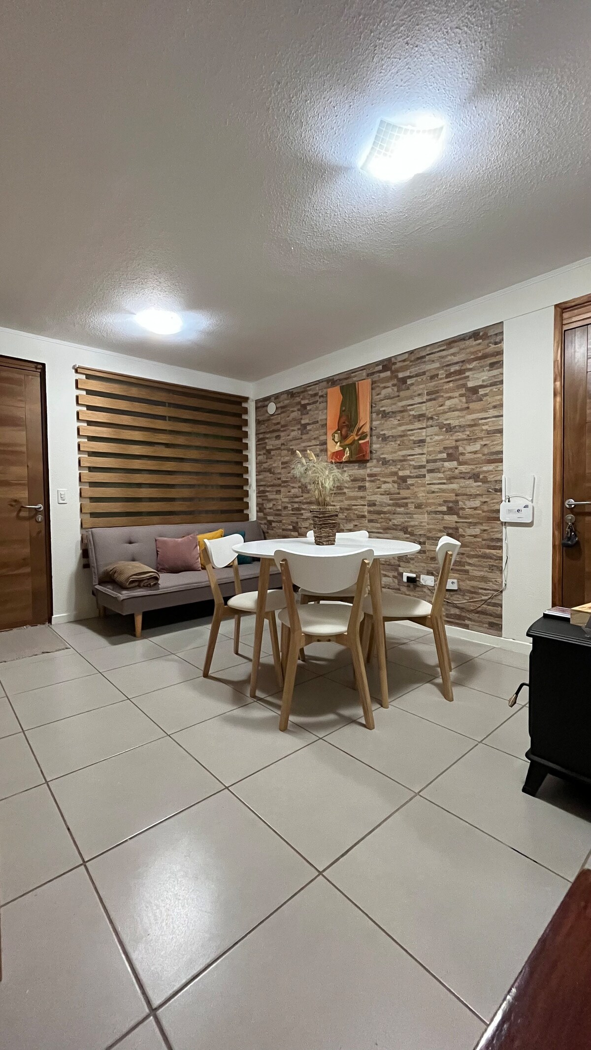 Desconecta de tus preocupaciones en este espacio tan amplio y sereno. Excelente y amplio departamento, ubicado en lugar residencial, a pasos del centro de Buin, centros comerciales, conectividad para cualquier sector, locomoción a la puerta. Living-comedor amplio, luminoso con vista al Sur, dormitorios con closet, 2 baños, Ventanales amplios, cocina amplia equipada. Completamente Amoblado. 1 estacionamiento
