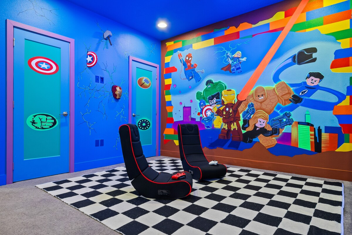 Villa de 3 dormitorios/3 baños | Piscina privada + Habitación temática + Sala de juegos