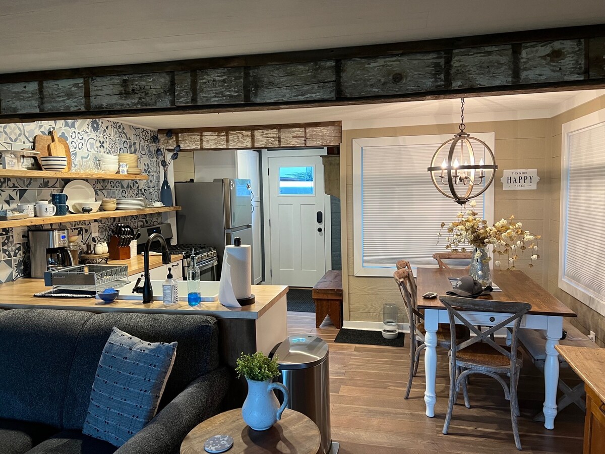 Pine Shore Retreat es una encantadora casa de campo tan cerca del lago que te sientes como si estuvieras en una casa flotante. La ubicación en el lado este significa que tienes fabulosas vistas al atardecer, así como un fondo duro y apto para nadar frente al muelle de la plataforma. Es un espacio pequeño, solo un dormitorio, pero muy acogedor. La comodidad es lo principal, con muebles nuevos y de alta gama. El frigorífico de acero inoxidable, las encimeras de granito y una cocina de gas en la cocina ofrecen una experiencia de gama alta.
