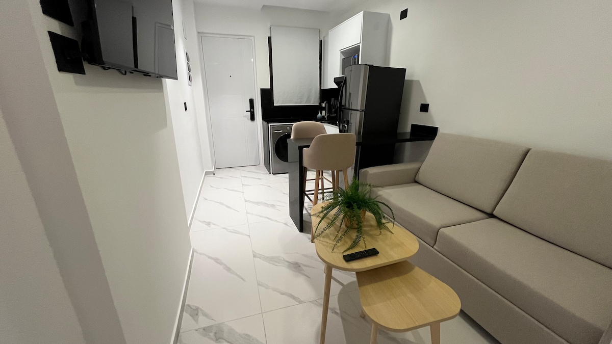 Apartamento de dos habitaciones recién construido con vista al mar desde su encantador balcón trasero. A solo unos minutos a pie del malecón de Miches, este apartamento es perfecto para quienes desean disfrutar de este hermoso pueblo costero. A cinco minutos de Playa Arriba y a 25 de Playa Esmeralda. Perfecto para una escapada romántica o un fin de semana divertido con los niños. Incluye cocina completa, wifi, Claro TV y lavadora y secadora.