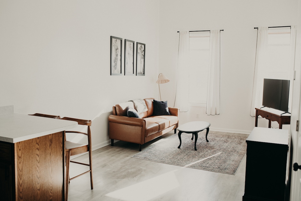 ¡Te damos la bienvenida a tu acogedor refugio urbano! Este espacio de estilo loft está cuidadosamente diseñado para ofrecer comodidad y conveniencia, por lo que es perfecto para parejas o viajeros solitarios que buscan una estancia memorable. Características que te encantarán: Salón estilo loft: un acogedor espacio abierto con una lujosa cama tamaño queen para noches de descanso. Cocina totalmente equipada. Un baño completo: limpio y moderno, perfecto para tus necesidades. Aparcamiento fuera de la calle: disfruta de un aparcamiento seguro y sin complicaciones durante tu estancia.