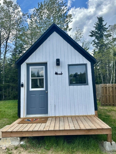 Tendrá acceso a los 5 km de senderos de nuestro lote de leña y a 2 km del río Iroquois que surcan nuestro lote. Estaremos allí para darle la bienvenida. Puede utilizar nuestra lavadora y secadora si es necesario. Agua, ducha, cocina de gas y nevera eléctrica, cama queen. La cama está en la entreplanta. Nota: Durante la temporada de invierno, no habrá agua corriente. Les traje agua limpia para el baño, la ducha y el consumo. Ideal para 2 personas.