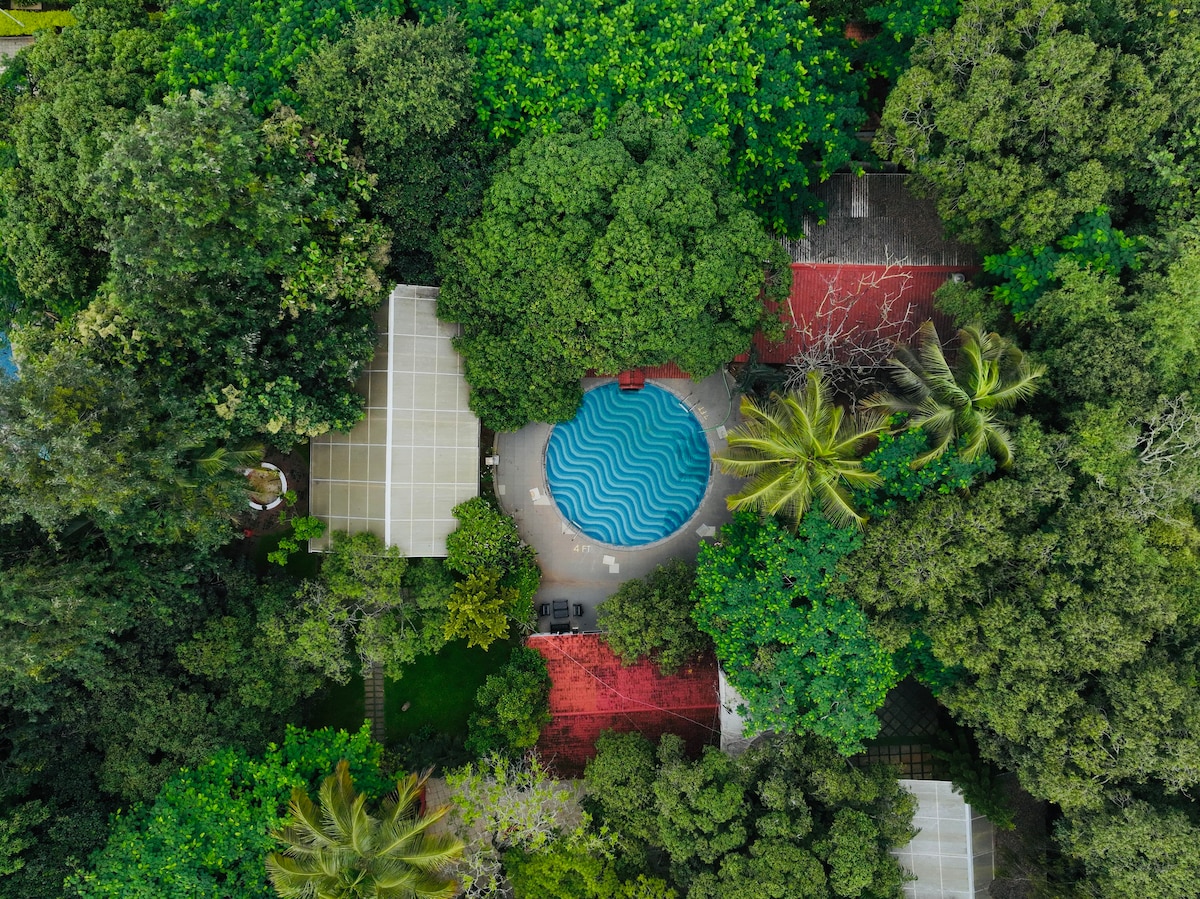 Relájate en esta casa de campo de tierra ecológica situada en un vibrante jardín urbano. Destacada en importantes revistas de arquitectura, está construida con una técnica tradicional de «paja y adobe» utilizando tierra, arcilla y paja, con bambú para los elementos estructurales, manteniéndola fresca y cómoda incluso en verano. Una experiencia verdaderamente única sin igual en la ciudad jardín de Bangalore, esta propiedad es el epítome de la sostenibilidad y difumina el límite entre la vida hogareña y la naturaleza. A menos de 30 minutos del aeropuerto.
