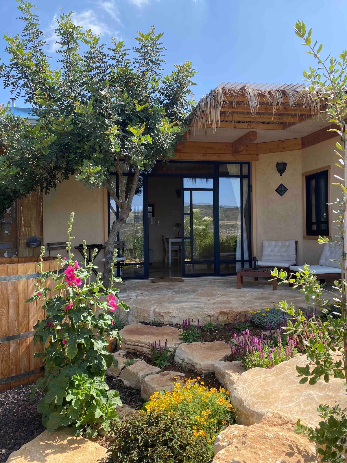 Una hermosa cabaña espaciosa para parejas en la comunidad de Goethe en Galilea. Con vistas al mar y a los acantilados, bordeado por un mágico uadi y rodeado de naturaleza verde por todas partes. La cabaña tiene un espacio luminoso y decorado. Cama doble grande y lujosa, cocina totalmente equipada, ducha única y zona de estar con vistas al wadi desde el que puedes salir a la naturaleza para hacer senderismo. En el patio, una lujosa bañera de hidromasaje con vistas. En ✨ verano, puedes bajar la temperatura. 💦 La cabaña fue construida con mucho amor mientras presta atención a los pequeños detalles para crear un lugar que daría la experiencia perfecta🤍