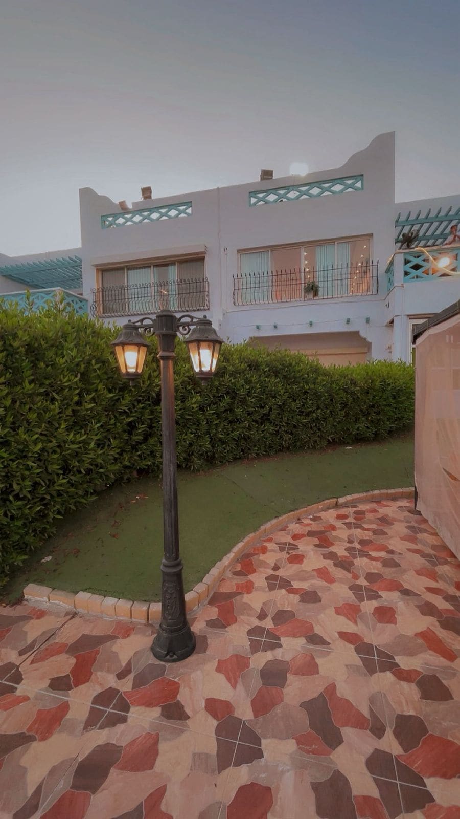 Clean and arabian style that make you relax . Near to the airport 15 mins. Has public pool 1 bedroom with big bed and sofa bed in saloon plus very big balconny pool view . Towel service . Has access card to private beach for the resort residents. Just 10 min walking . Near shopping area and restaurants . Near water activities