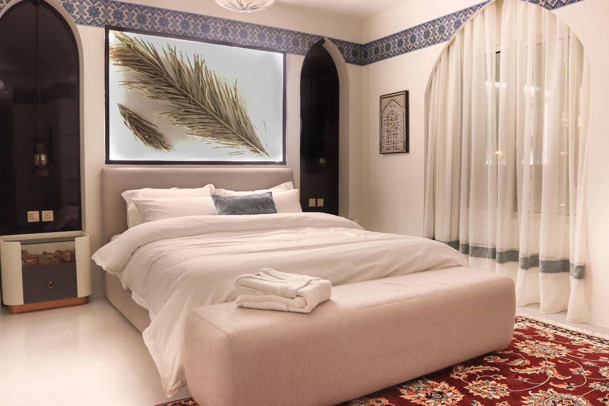 Room 5 is located on the second floor and is accessible by stairs. It offers one of the highest levels of quietness, with a single window overlooking the courtyard and an open view. Athar Lodge is a heritage home in Al-Maghaysilah, about a 23-minute walk from Al-Masjid an-Nabawi. There is no elevator. Suitable for individual stays, with no extra beds or child amenities.