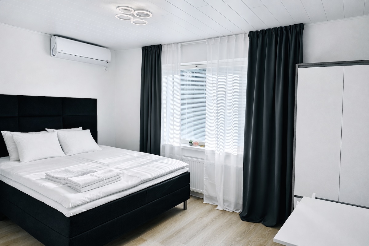 Tapiontupa,es un apartamento adosado tranquilo y elegante a 3,5 km del centro de Mikkeli, en el distrito de Launiala. A 2 km de Prisma, Citymarket y muchos otros servicios. Aquí también puedes disfrutar de la vida de playa en la playa de la ciudad y nadar en el lago Saimaa (a 800 metros del apartamento). Puedes calentar la sauna, el baño y la barbacoa en tu propia terraza aislada. El alojamiento incluye sábanas y toallas. Hay un lugar para tu coche en la cochera. ¡Ven y diviértete!