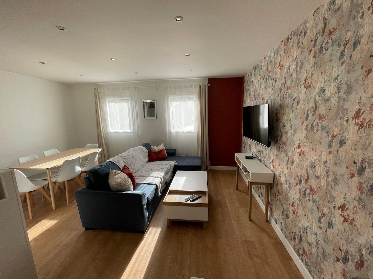 Este alojamiento familiar en el centro de la ciudad, de poco más de 70 m2, está cerca de todos los sitios y comodidades. Muy luminoso y tranquilo, ha sido completamente renovado y equipado con muebles nuevos, muy cómodos, atención al detalle; En la planta baja encontrará un gran inodoro con lavamanos, una cocina abierta equipada y una sala de estar /comedor. En la planta superior encontrará un baño grande con bañera e inodoro, así como dos dormitorios. Una doble y una doble individual.