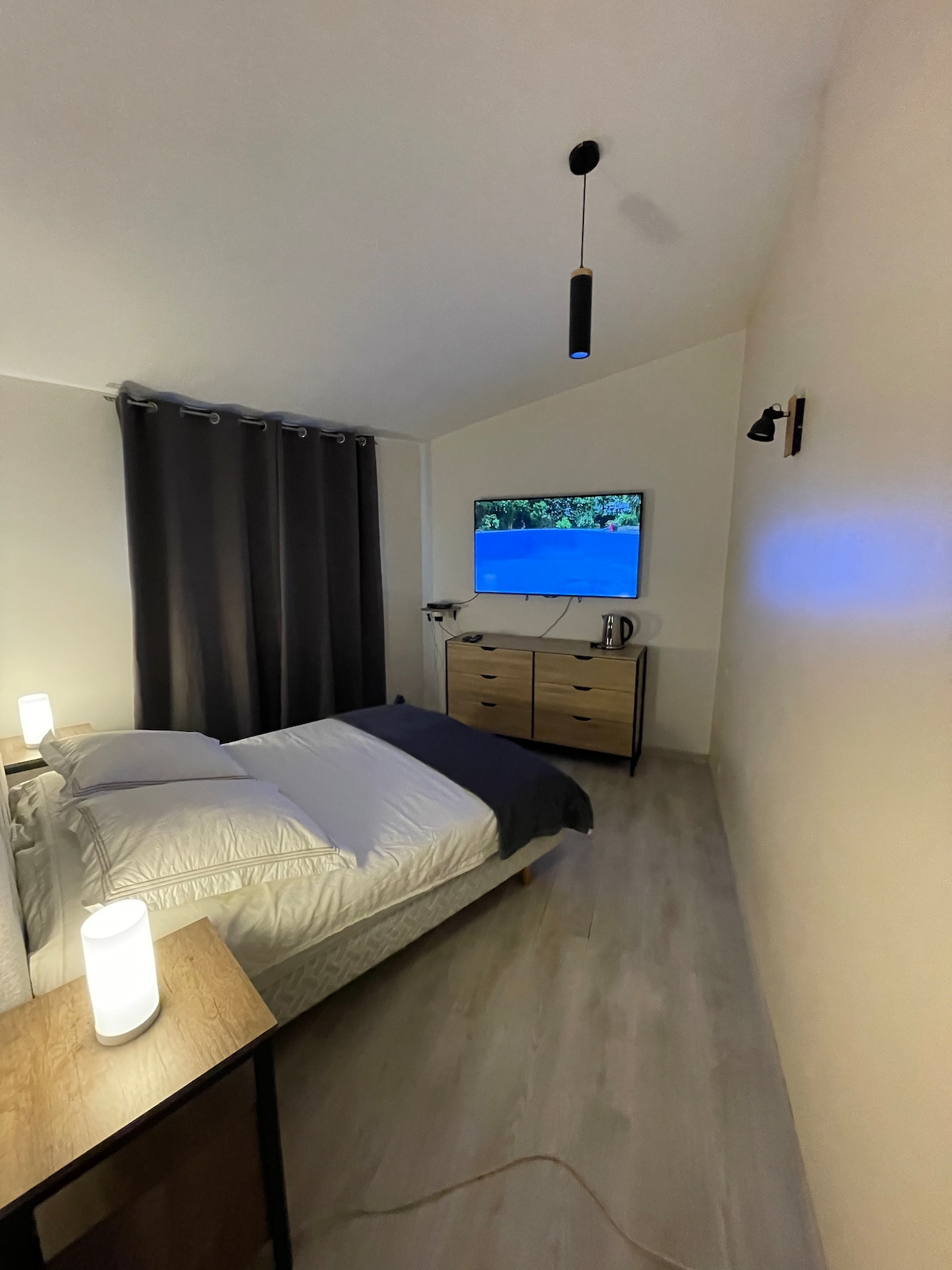 Découvrez un cocon lumineux et élégant, niché dans un immeuble calme et sécurisé en plein centre-ville. Décoré avec des matières naturelles et une ambiance sauge apaisante, cet appartement offre confort, sérénité et charme moderne. Tout se fait à pied : commerces, restaurants, services. Parfait pour se détendre ou travailler dans un cadre agréable. Bienvenue chez vous.
